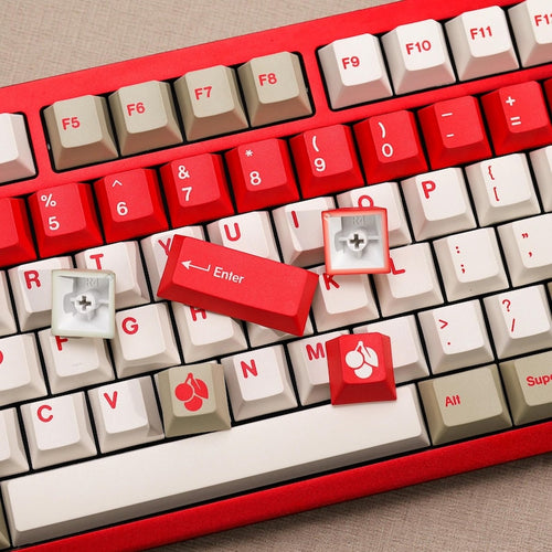 Retro Red n White PBT Keycap Set | Vintage 90s Style | Cherry Profile Dye-Sub | ISO & ANSI Compatible for Custom Keyboards